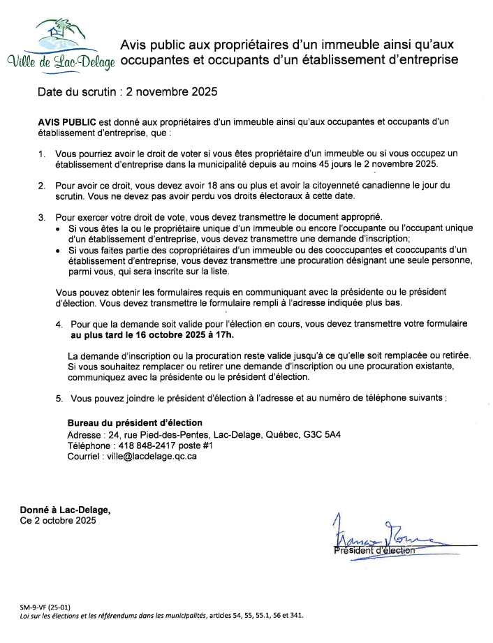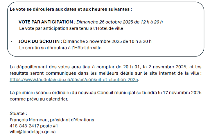 Élection générale du 2 novembre 2025 Date importantes à retenir |
