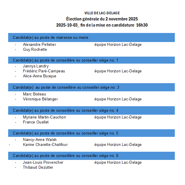 Élection générale du 2 novembre 2025 3 octobre 2025 - résultat de la mise en candidature |
