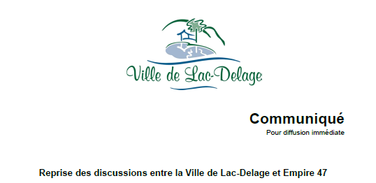 Communiqué reprise des dicussions entre la Ville de Lac-Delage et Empire 47 28 janvier 2026 |
